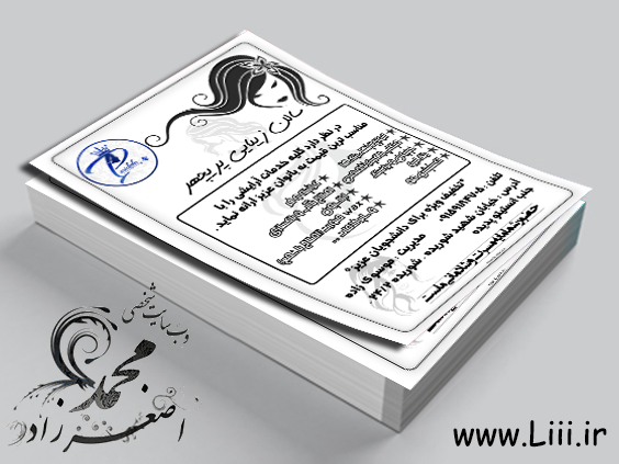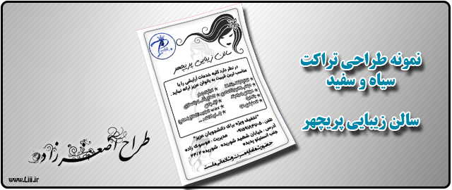 نمونه طراحی تراکت سیاه و سفید "سالن زیبایی پریچهر" واقع در خیابان شوریده 24/2