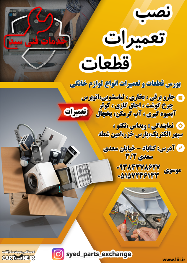 نمونه طراحی تراکت رنگی "خدمات فنی سید" واقع در خیابان سعدی گناباد